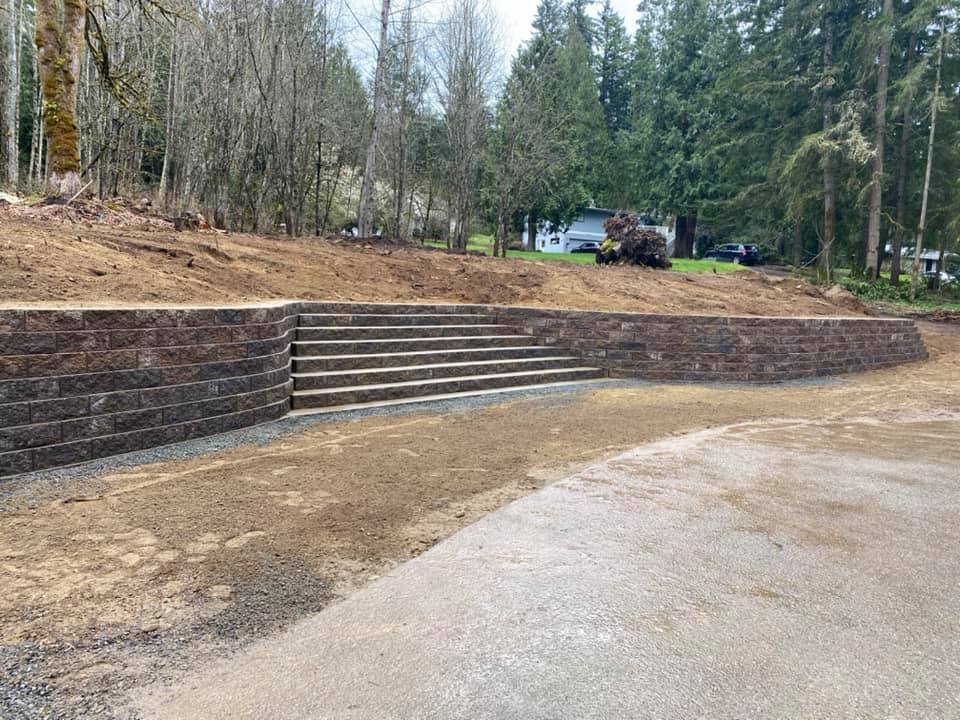 offers retaining wall construction services in the Snohomish county area. We specialize in building beautiful and functional retaining walls and can work with the varying sloped landscapes in our areas. Retaining walls most often serve as a useful way to retain and hold back soil or rock from a building, structure or landscape area. They are also great to prevent downslope erosion and provide landscaping support for slopes.